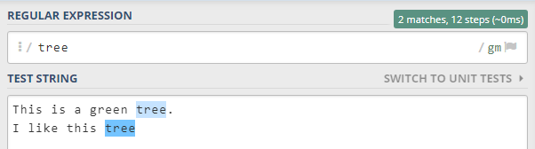 where g is global mode and m is multiline mode and tree is the text to match.